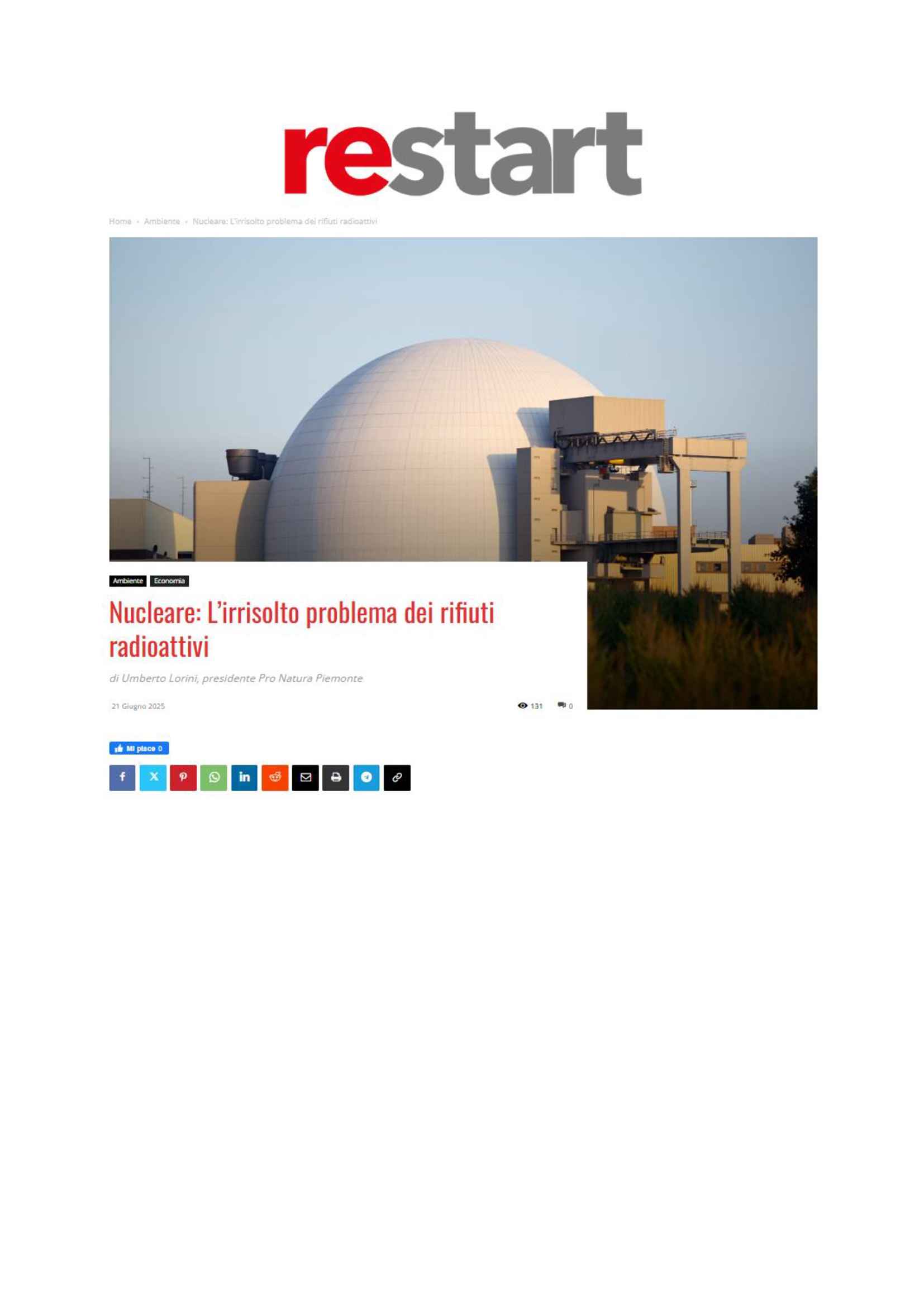 vai a:  Nucleare: L'irrisolto problema dei rifiuti radioattivi